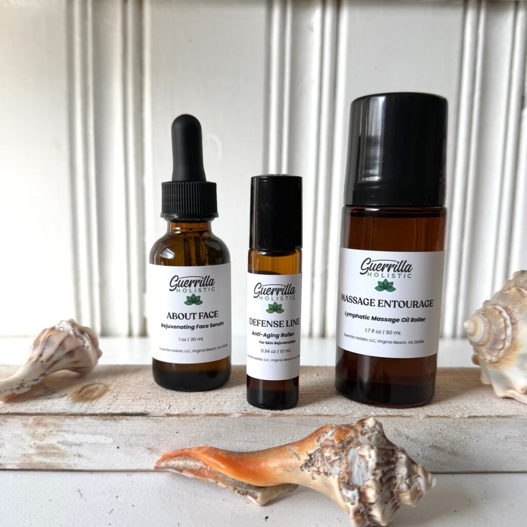 “At Guerrilla Holistic, we craft skincare that supports your body’s natural beauty and balance. Each formula is made with trusted botanicals to encourage lymphatic flow and restore healthy, radiant skin.“