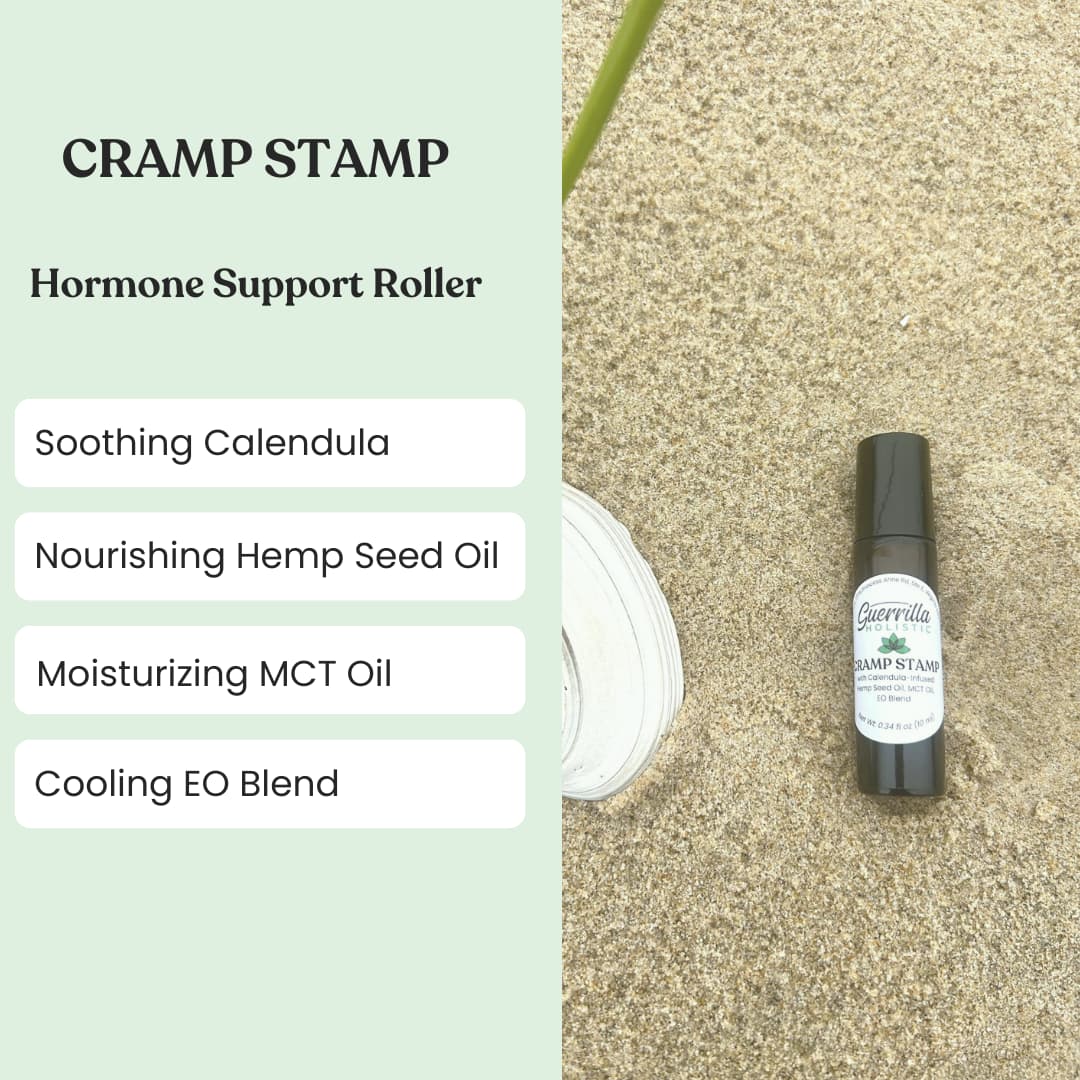 Cramp Stamp offers gentle, effective comfort for cramps, hormonal tension, and the emotional ups and downs that can come with it.